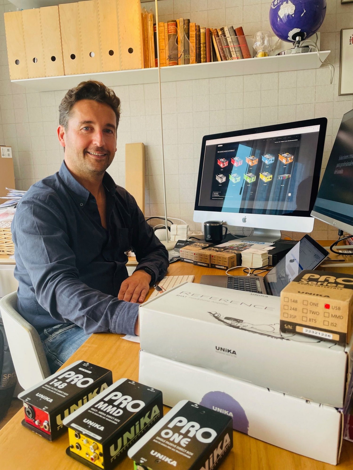 Attached image: Alex Juarez, Owner and Founder 60X90 Grados with UNiKA Pro DIs and Headphone amps.
